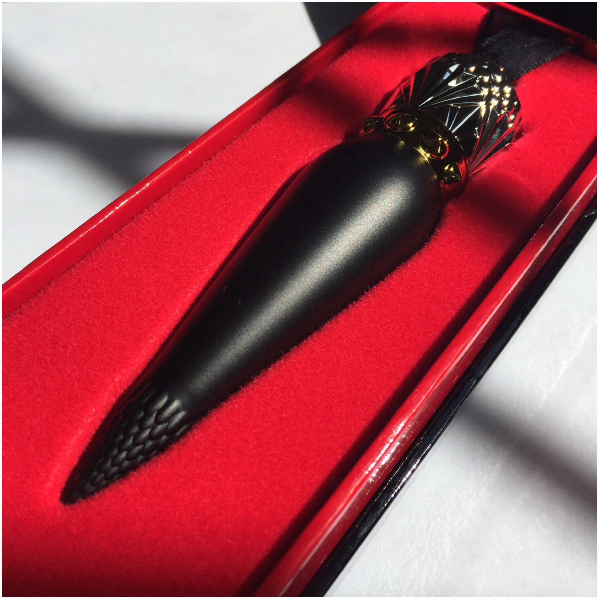 Christian Louboutin debuted his lipstick/lip-definers line on Sept 1st, 2015, which was highly anticipated by the beauty community, I decided to go with his signature shade Rouge in the matte formula……… I am very pleased……….